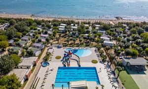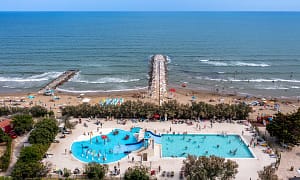 Camping bij Cesenatico, Adriatische Kust in Italië. Lagunezwembad met glijbaantjes. Neem het treintje over de camping. Op maar 20 km van pretpark Mirabilandia. Vlakbij stadje...