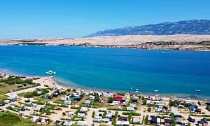 Camping bij , Eiland Pag in Kroatië. Mooi zand- en kiezelstrand. Spectaculair uitzicht op de prachtige baai van Pag. Ontdek de lokale keuken in het restaurant. Vlakbij Kolan,...