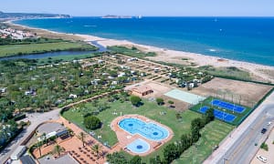 Camping bij Pals, Costa Brava in Spanje. Direct aan zee met breed zandstrand. Miniclub en discoavonden. Zwembad met ruime ligweide. Vlakbij prachtige baaien, zoals die van Begur.