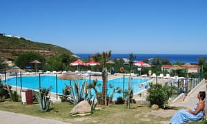 Camping bij Sant'Antioco, Sardinië in Italië. Rustige camping in prachtige omgeving. Direct aan zandstrand. Zwembad met uitzicht op zee. Snorkelen, boottochtjes etc.