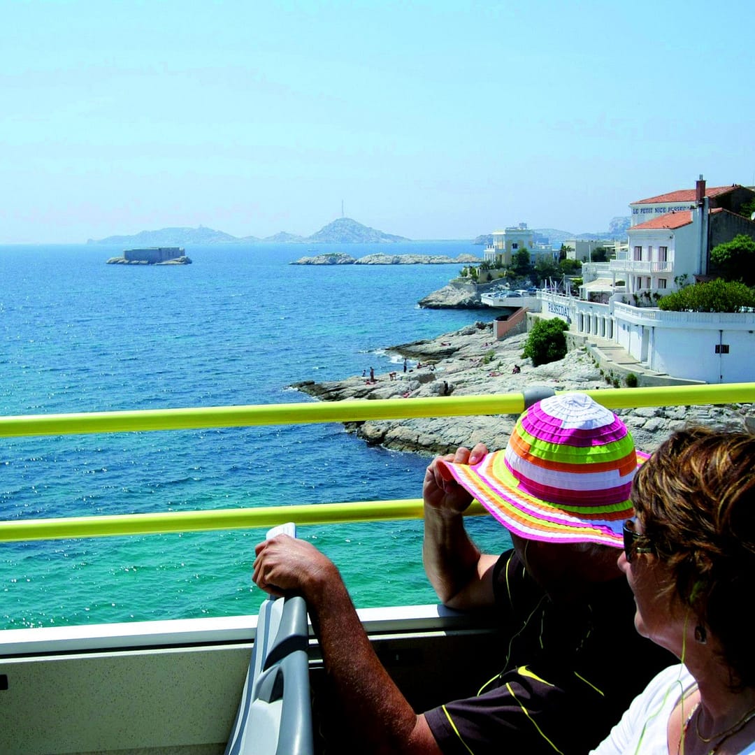 De makkelijkste en de snelste manier om Marseille te verkennen is met de Hop-on-Hop off bus. Deze bus brengt je langs alle bezienswaardigheden. En een audiogids in 6 talen is aanwezig in de bus. De ticket voor de bus is 1 of 2 dagen geldig en de bus stopt bij 14 haltes. Bij elke halte ben je vrij om uit de bus te stappen of weer in te stappen.