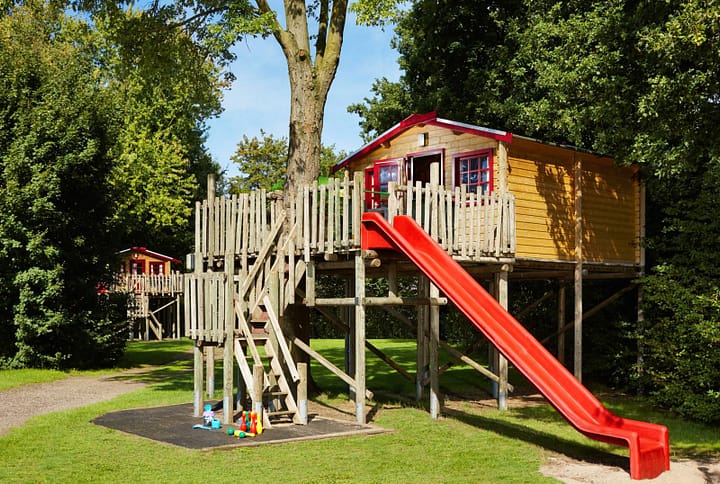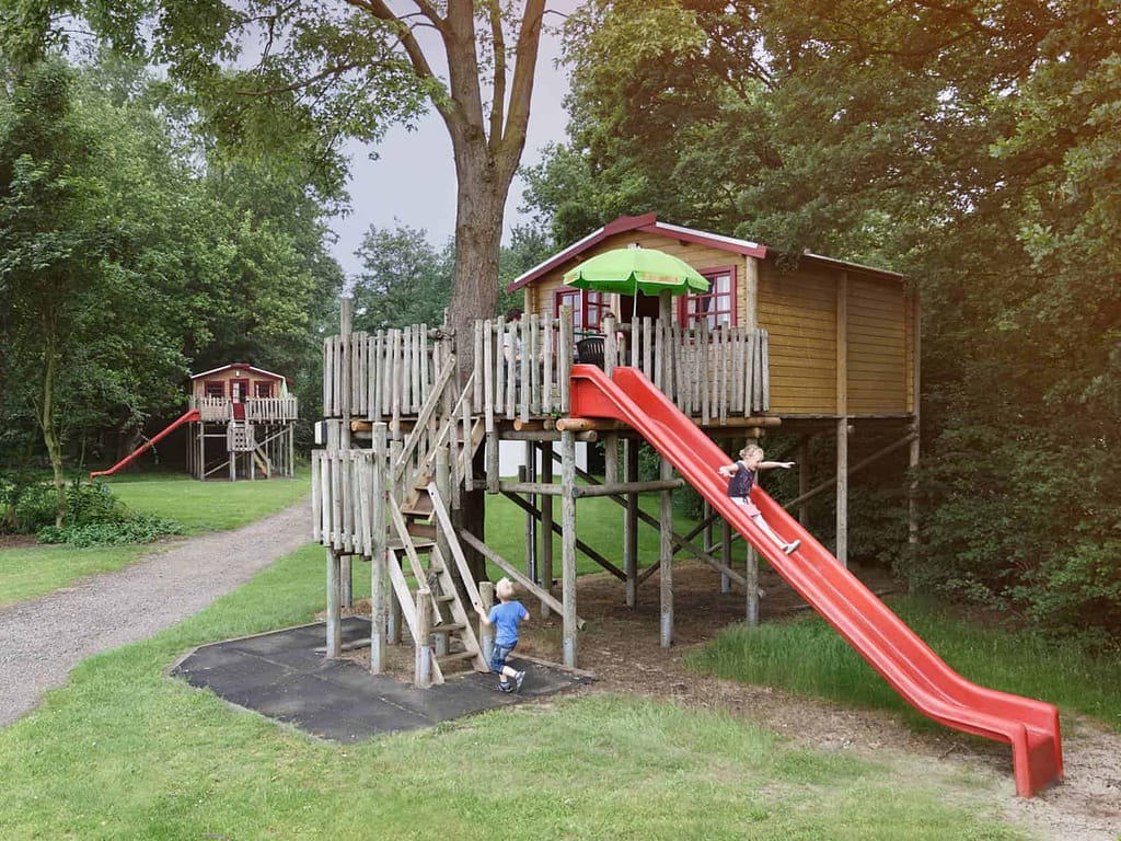 Slapen in een boomhut is stoer en avontuur. Maar ook de beschikking hebben over een eigen glijbaan dat is natuurlijk helemaal super vet en gaaf. Vanaf je eigen veranda glij je zo naar beneden. De boomhut is gezellig en met name de veranda op hoogte is super mooi. Je kan er spelen, eten, luieren en lekker en je boekje lezen. De boomhutten staan ieder op een prachtige grote plek tegen de bossen. Met zo’n toffe vakantie heb je na de vakantie wel wat te vertellen op het schoolplein!