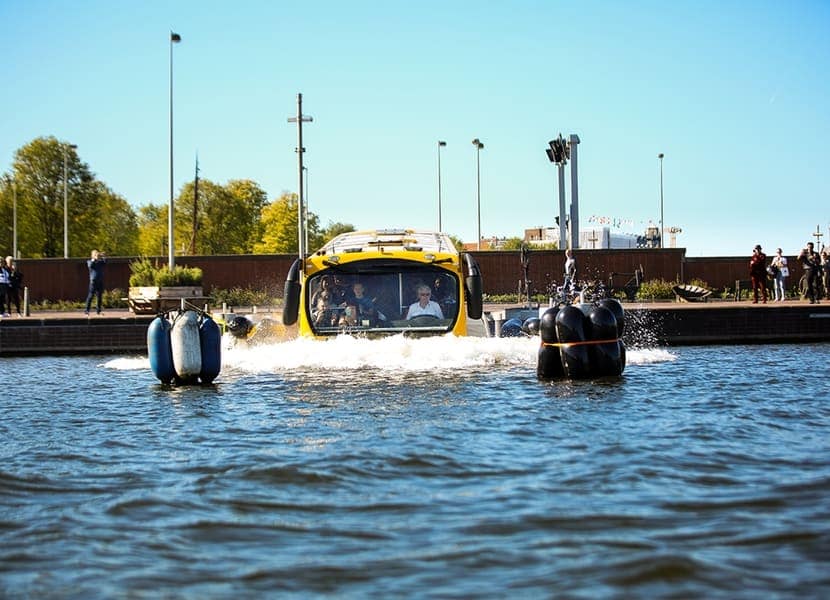 Tijdens de circa 60 minuten durende tocht met deze amfibie bus, passeer je de mooiste plekjes van de stad en allerlei leuke bezienswaardigheden. Onder andere kom je bijvoorbeeld langs de Amsterdam Lookout met de adembenemende Amsterdam Swing. Oftewel de schommel voor echte adrenaline junkies. Maar ook bijvoorbeeld langs het Eye Museum. En ook kun je genieten van de drukte van de boten en pontjes op het IJ. Verder heb je prachtige uitzichten op onder het andere het authentieke Centraal Station en andere historische gebouwen.