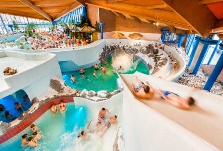 20.000 m2 overdekt én toch in de frisse buitenlucht zwemmen, spelen, springen, klimmen, voetballen, karten en meer…