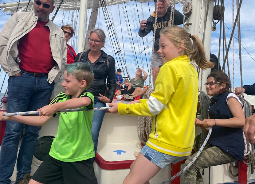 Het schip waar je mee gaat zeilen is De Bounty. Die naam zal je vast bekend voorkomen, want dat was namelijk ook de naam van het wereldberoemde schip waarop in 1789 op de Stille Oceaan muiterij was uitgebroken. En waarvan een bekende film is gemaakt. Bounty is een prachtig traditioneel zogenaamd dwarsgetuigd zeilschip van het type Brigantijn. Ze zeilt onder maar liefst 9 zeilen, met een totaal zeiloppervlakte van 405 vierkante meter. Daarnaast zijn er in totaal ruim 114 lijnen om dit allemaal te besturen. En daarom is dit een uniek schip op de Nederlandse binnenwateren.