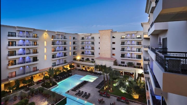 Opera Plaza Hotel verwelkomt je met zijn elegante architectuur, weelderige interieurs en warme gastvrijheid, waardoor je je direct thuis voelt. Gelegen op een steenworp afstand van de historische medina en de betoverende Djemaa el Fna-plein, biedt het hotel een perfecte uitvalsbasis om de schatten van Marrakech te verkennen. Begin je dag met een goed ontbijt voordat je de kronkelende steegjes van de medina verkent, waar je wordt omringd door een overvloed aan kleurrijke kraampjes, geurige specerijen en ambachtelijke schatten. Breng een bezoek aan de betoverende paleizen en tuinen van de stad, zoals de majestueuze Bahia Palace en de weelderige Jardin Majorelle, waar je kunt genieten van een oase van rust en schoonheid te midden van de drukte van de stad. Na een dag vol avontuur kun je terugkeren naar Opera Plaza Hotel en ontspannen in luxe en comfort. Neem een verfrissende duik in het prachtige buitenzwembad, omringd door weelderige groene tuinen, of verwen jezelf met een ontspannende massage in de uitgebreide spa van het hotel.