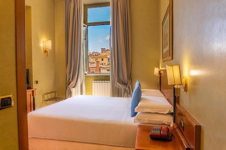 Dit hotel ligt in het kloppende hart van Rome met alle highlights binnen handbereik. Rome ligt letterlijk aan je voeten. Begin de dag met het uitgebreide ontbijtbuffet en ga op pad in de Eeuwige Stad. Tussendoor geniet je van een heerlijke cappuccino, Italiaans wijntje of een heerlijke pasta. De meeste kamers hebben ook nog eens prachtig uitzicht op de stad dus zelfs na thuiskomt geniet je nog na van de Italiaanse charme.
