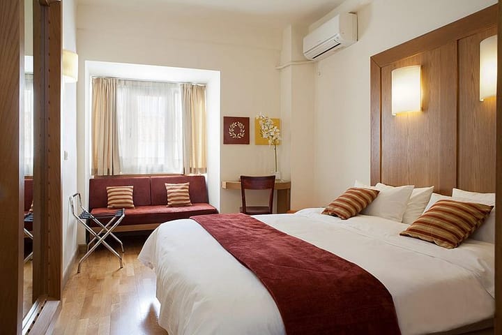 GRATIS: Wandeling onbekend Athene, Service met een glimlach, Gunstige ligging in centrum, Winkelstraat Ermou om de hoek, Uitgebreid ontbijtbuffet, In de gezellige wijk Plaka & inclusief transfers.