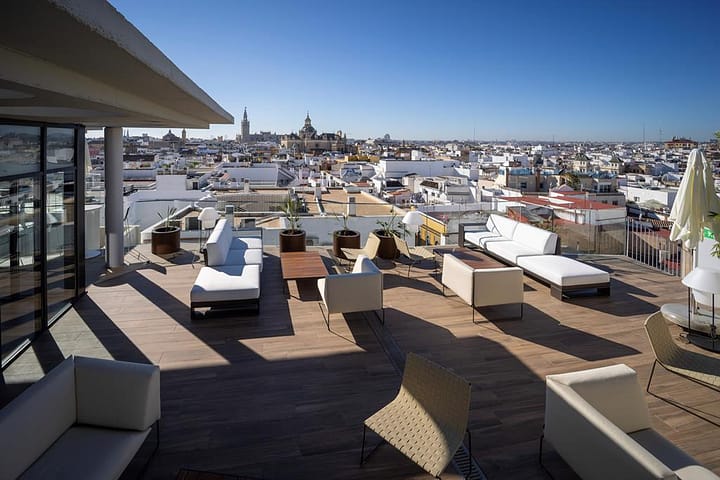 Gratis stadstour Sevilla, Deur uit, centrum in, Afkoelen op het dakterras, Genieten van het uitzicht, Een ontbijt om van te smullen, Te voet naar de highlights & inclusief transfers.