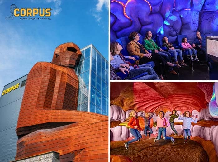In Corpus in Leiden kun je een reis door het menselijk lichaam maken. Tijdens die reis kun je zien hoe ons menselijke lichaam nu precies werkt. Hoe werken de organen, de ledematen, het oog, hoe groeien baby’s en nog veel meer. Tijdens de reis val je van de ene verbazing in de andere. Hier zie je pas hoe bijzonder jouw lichaam is! Kom bijvoorbeeld eens een kijkje nemen in de baarmoeder en verwonder je over het ontstaan van nieuw leven. Maak ook eens een wandeling door de mond en ga even zitten in de hersenen. Naast de reis door het lichaam kun je hier ook lekker super interaktief aan de slag.