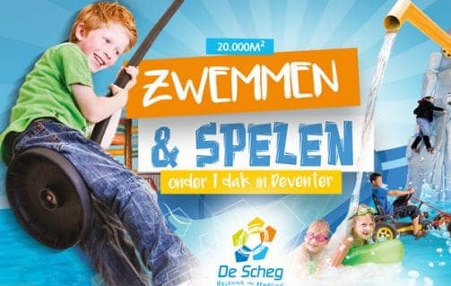 Voor een hele dag vol spetterend zwem- en speel plezier kom je naar zwemparadijs de Scheg in Deventer. In De Scheg vind je een glijbaan van wel 70 meter lang! Goedkope entree tickets kun je nu via Dagjeuitpagina.nl met wel 20% korting bestellen. Een toegangskaartje bestel je al via deze website voor slechts 7,70 in plaats van 9,60 aan de kassa ter plaatse. Dat scheelt je dus al gauw 1,90 per entree ticket.