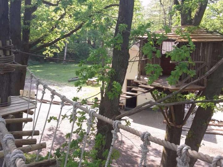 In het bos bij ’t Heuveltje (het voormalige leprozenhuis) zijn maar liefst 20 hindernissen gebouwd, tussen de 5 en 8 meter hoog. Daarbij zijn vooral natuurlijke materialen gebruikt, zodat de robuuste klimhindernissen helemaal opgaan in de natuur. Het bos is veranderd in een jungle, waarin je je helemaal kunt uitleven. Klauterend van boom naar boom via netten en hangbruggen raak je bijna de boomtoppen. Je ziet de wereld vanuit een heel andere invalshoek. Via een 40 meter lange tokkelbaan beland je uiteindelijk weer met beide benen op de grond. Tijd om wat te drinken en na te praten.