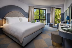 Ontdek subtiele Efteling-details en een kleurthema geïnspireerd op het uitzicht van het Grand Hotel. De kamer is voorzien van een luxe 2-persoonsbed en een 1-persoonsbed.