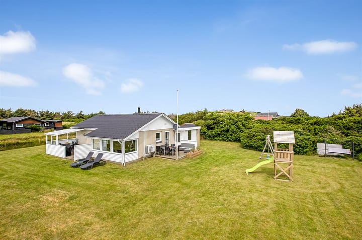 Vakantiehuis is geschikt voor 6 personen. De vakantiewoning heeft een oppervlakte van 73 m2 en is gebouwd in 1971. In 2008 ondergingen de vakantiewoning een gedeeltelijke renovatie. Het is toegestaan om 2 huisdieren mee te nemen. De vakantiewoning is uitgerust met een energiezuinige lucht-naar-lucht-warmtepomp. De vakantiewoning heft Wasmachine. Wasdroge. Vriezer capaciteit van 40 liter. Er is daarnaast houtkachel. Voor de kleintjes 1 stukken Kinderstoel.De vakantiewoning is gelegen op een 1497 m² groot natuural grond. Afstand tot de zee 650 m. Dichtstbijzijnde winkel 2500 m. Er is een golfbaan op een afstand van 1300 m. Bij de vakantiewoning hoort terras. Daarnaast is er een overdekt terras. Schommel. Zandbak. Speelhuisje. Afstand tot speelplaats 900 m. Parkeerplaats bij het huis.Er zijn in totaal 3 slaapkamers. De slaapplaatsen zijn als volgt verdeeld: 4 slaapplaatsen in tweepersoonsbedden. 2 slaapplaatsen in eenpersoonsbedden. Verder is kinderbed ter beschikking.De keuken is uitgerust met koelkast Er zijn 4 keramische kookplaten, heteluchtoven, magnetron en vaatwasser. Er is 1 badkamer met douchehok en 1 toilet.. Er is vloerverwarming in 1 badkamer.In de vakantiewoning is aanwezig televisie. 1-3 deense zenders. 1-3 duitse zenders. Draadloos internet.