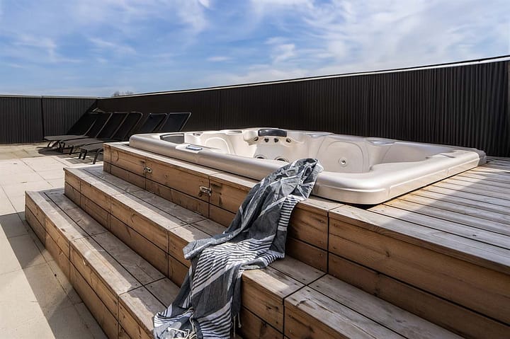 Vakantiehuis is geschikt voor 14 personen. De vakantiewoning heeft een oppervlakte van 216 m2 en is gebouwd in 2025. Het is toegestaan om 2 huisdieren mee te nemen. De vakantiewoning is uitgerust met een energiezuinige lucht-naar-water-warmtepomp. Er is vloerverwarming in het hele huis. De vakantiewoning heft Wasmachine. Wasdroge. Er is daarnaast houtkachel. Voor de kleintjes 1 stukken Kinderstoel.De vakantiewoning is gelegen op een 1442 m² groot natuural grond. Afstand tot de zee 400 m. Dichtstbijzijnde winkel 3700 m. Er is een golfbaan op een afstand van 21000 m. Bij de vakantiewoning hoort terras. Daarnaast is er een overdekt terras. Schommel. Zandbak. Trampoline. Speeltoren. Glijbaan. Buitensauna. Buitendouche. Barbecue. Het huis heeft een stopcontact voor het opladen van een elektrische auto. CEE-stekker. Parkeerplaats bij het huis.Het binnenzwembad biedt de gelegenheid om heerlijk te spelen en gezellig samen te zijn. Het zwembad is 2,7 m breed, 6 m lang en tot 1,4 m diep. Het water heeft een temperatuur tussen de 24 en 28 °C. Het binnenzwembad heeft een tegenstroominstallatie. Er is een waterglijbaan. Er is vloerverwarming in het zwembadgebied.Activiteitenruimte. Biljart. Pooltafe. Tafeltennis. Dart. Tafelvoetbal. Er zijn in totaal 6 slaapkamers. De slaapplaatsen zijn als volgt verdeeld: 4 slaapplaatsen in tweepersoonsbedden. 8 slaapplaatsen in eenpersoonsbedden.2 slaapplaatsen op matrassen. 2 van deze slaapplaatsen bevinden zich in de open slaapzolder. Verder is kinderbed ter beschikking.De keuken is uitgerust met 2 koelkasten Er is 4 inductiekookplaten, heteluchtoven, magnetron en vaatwasser. Er is 3 badkamers met douchehok en 3 toiletten. Er is vloerverwarming in 3 van de badkamers.Het buitenbubbelbad (vulwater) biedt ontspanning aan 6 personen.In de vakantiewoning is aanwezig 2 televisies. Draadloos internet.