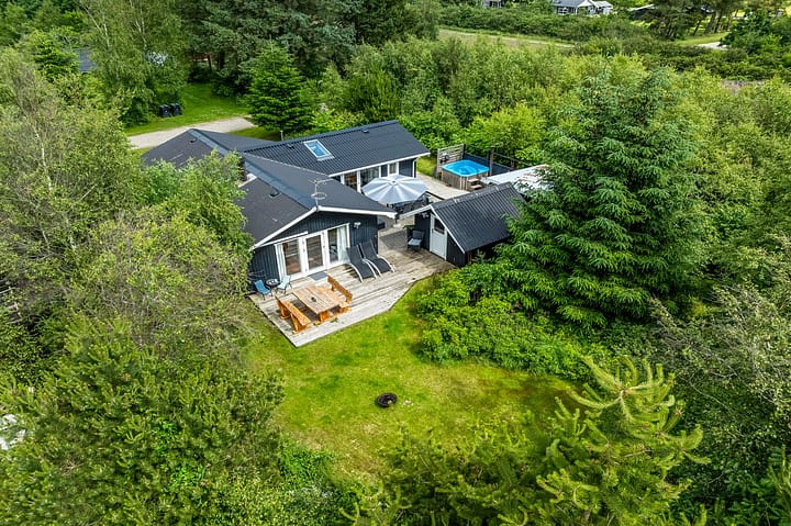 Vakantiehuis is geschikt voor 10 personen en 1 kinderen tot 3 jaar. De vakantiewoning heeft een oppervlakte van 101 m2 en is gebouwd in 2002. In 2015 is de vakantiewoning volledig renoveerd. Het is toegestaan om 2 huisdieren mee te nemen. De vakantiewoning is uitgerust met 2 energiezuinige lucht-naar-lucht-warmtepompen. De vakantiewoning heft Wasmachine. Wasdroge. Vriezer capaciteit van 40 liter. Er is daarnaast houtkachel. Voor de kleintjes 1 stukken Kinderstoel.De vakantiewoning is gelegen op een 1400 m² groot natuural grond. Afstand tot de zee 3500 m. Dichtstbijzijnde winkel 2500 m. Er is een golfbaan op een afstand van 18000 m. Bij de vakantiewoning hoort 100 m² terras. Gereedschapsruimte. Schommel. Zandbak. Trampoline. Afstand tot speelplaats 300 m. Buitendouche. Barbecue. Het huis heeft een stopcontact voor het opladen van een elektrische auto. Oplaadstekker type 2. Met 11 kW-laadvermogen. Parkeerplaats bij het huis.Er zijn in totaal 5 slaapkamers. De slaapplaatsen zijn als volgt verdeeld: 4 slaapplaatsen in tweepersoonsbedden. 2 slaapplaatsen in eenpersoonsbedden. 4 slaapplaatsen in stapelbedden. 2 van deze slaapplaatsen bevinden zich in de bijgebouw. Verder is kinderbed ter beschikking.De keuken is uitgerust met koelkast Er is 4 inductiekookplaten, heteluchtoven, magnetron en vaatwasser. Er is 2 badkamers met douchehok en 2 toiletten. Er is vloerverwarming in 2 van de badkamers.Het buiten hot tub biedt ontspanning aan 5 personen. In de vakantiewoning is aanwezig 1 smart-tv.1 Chromecast. Radio.1 Bluetooth-speaker.Playstation3. Tenminste 4 deense zenders. 1-3 sweedse zenders. 1-3 noorse zenders. 1-3 duitse zenders. Draadloos internet.