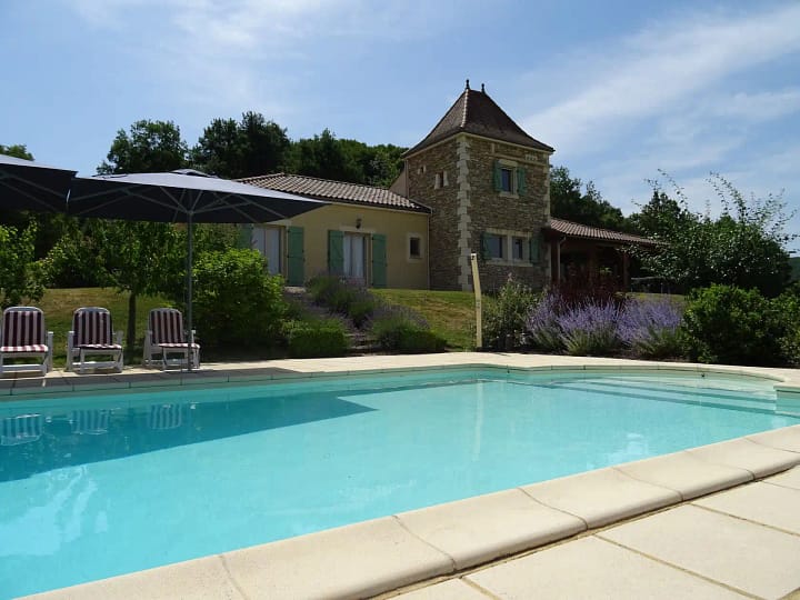 Het huis is gebouwd in 2007 en voorzien van alle comfort. Er zijn twee slaapkamers met een 2-persoonsbed en twee slaapkamers met elk 2 1-persoonsbedden. Drie slaapkamers op de begane grond en een in de toren (2-persoons). Twee badkamers, waarvan een met toilet. Apart toilet. Grote huiskamer (ca. 60 m2) met houtkachel, tv, dvd-speler, stereo-installatie. Compleet ingerichte keuken met vaatwasmachine, magnetron, 5-pitsgasfornuis met elektrische oven, grote koel/vriescombinatie. Bijkeuken met wasmachine en wasdroger. Vanuit de huiskamer en keuken komt u op een heerlijk overdekt terras (gelegen op het zuidwesten) met een fantastisch uitzicht over de omgeving. U heeft de beschikking over een verwarmd zwembad van 5 x 10 meter. Het huis staat op een terrein van 1,8 hectare. Carport met plaats voor twee auto’s. Oplaadpunt elektrische auto 16 Amp (kosten 25 eurocent per kWh).