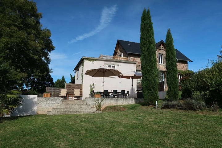 Maision La Chappele Bellevue is een plek waar je gezellig kunt samen zijn met ze tweeën, het gezin, familie en vrienden en kunt genieten van het mooie uitzicht vanaf het terras. Op het terras kun je genieten van de zon, een goed glas wijn, een goede maaltijd en ’s nachts van een sterrenhemel. Het mooie huis is volledig gerenoveerd, ruim en comfortabel. Gelegen in het zuid-westen van Frankrijk. De gîte ligt aan de rand van een klein bourg dorpje La Chapelle Salamard aan de noordkant van de populaire Vallée de la Vézère en nabij de Dordogne. Het ligt op 5 minuten van de regionale dorp Objat met het hele jaar door een zondagsmarkt, drie supermarkten, medische zorg, winkels, een zwemparadijs, bars en restaurants. Er zijn vele mooie dorpen te bezichtigen met restaurents en plekken waar je in de rivier kunt zwemmen.