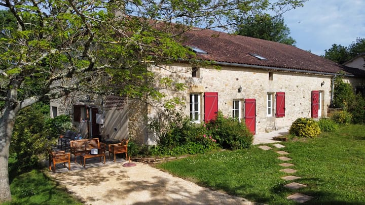 Deze gite ligt op een heuvel, tussen prairies en bosrand, op een terrein van 35 hectare. Een tuin vol bloemen en fruitbomen, weides waar je wild kan spotten, en in het bos vind je een sprookjesachtige Gariotte en een bosvijver waar het wild in de schemering komt drinken..