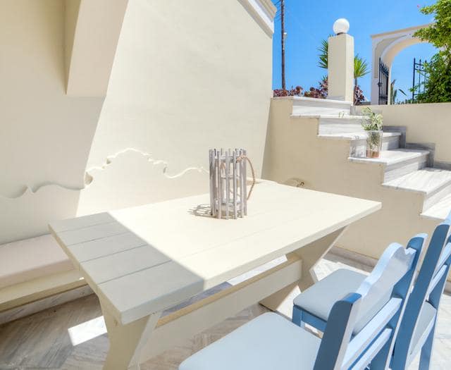 Als ik de pas gerenoveerde kamers van Monolithia Traditional Houses zie, snap ik gelijk waarom eigenaresse Vasilis zo trots is. Mijn frisse, modern ingerichte kamer is van alle gemakken voorzien en als ik naar buiten kijk zie ik de felblauwe zee. Vasilis vertelde mij dat ze graag de beste ervaring wilt bieden aan de bezoekers van Santorini, weg van het wat drukkere gedeelte. Bij Monolithia Traditional Houses geniet ik van de rust en val ik in slaap met het geluid van de zee op de achtergrond. Wegdromend bij deze gedachten kijk ik tevreden om mij heen. Ik zie Vasilis voorbij lopen en complimenteer haar nogmaals met deze prachtige plek.