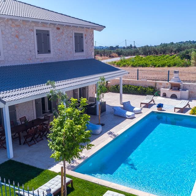Villa Zante Soleil in Lagopodo biedt een luxe verblijf in een van de drie schitterende villa’s: Starlet Villa, Luna Villa en Zante Soleil Villa, allemaal met een eigen privézwembad. De villa’s zijn smaakvol ingericht met een perfecte balans tussen modern comfort en authentieke Griekse charme. De buitengevels zijn opgebouwd uit prachtige stenen muren en raampjes met openslaande shutters, die de villa’s een typische mediterrane uitstraling geven. Het grote terras bij het privézwembad biedt volop ruimte om te genieten van de zon, of om te ontspannen onder de overkapping. Overal is aan gedacht om jou van een ideale vakantie te voorzien.