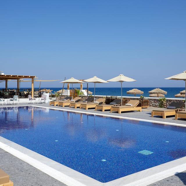 Liggend aan het zwarte strand, ontkom je in Sea Breeze Santorini niet aan het spectaculaire uitzicht. Bekijk dan ook zeker de zonsondergang vanuit je eigen zwembad of hottub. Lekker even relaxen? Doe mee met de yogalessen, of ga naar de spa om van een stoombad of massage te genieten. Het gastvrije personeel vertelt je graag wat je kunt beleven in de omgeving. Zo kun je bijvoorbeeld een fiets huren, een cruise op een jacht aanvragen, of naar een wijnproeverij gaan. Sluit de dag af in het restaurant waar heerlijke Griekse en Mediterrane gerechten worden geserveerd, uitkijkend over de kristalblauwe zee. Ook voor de kleintjes is er genoeg om van te smullen!