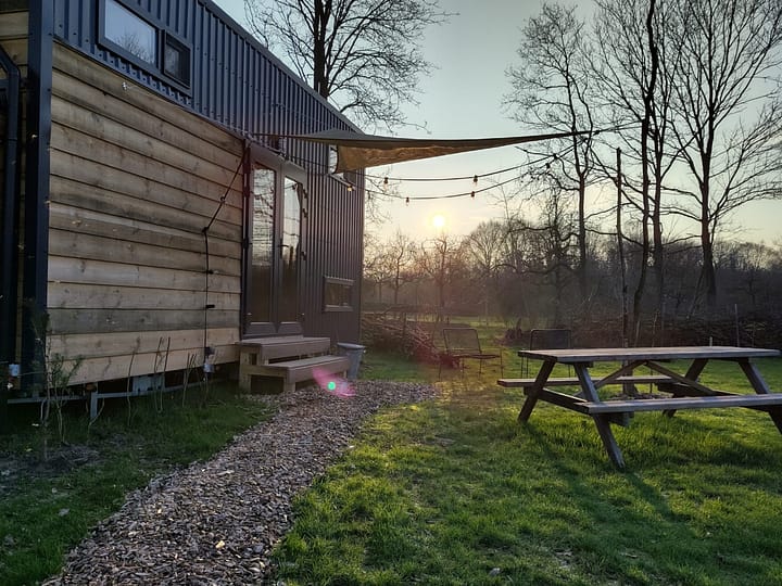 Dit nieuwe tiny house op wielen ligt aan een boomgaard. In je houtgestookte privé hottub is ruimte voor je hele gezin! Maar ook ideaal voor een avond met z'n tweetjes onder de sterren.