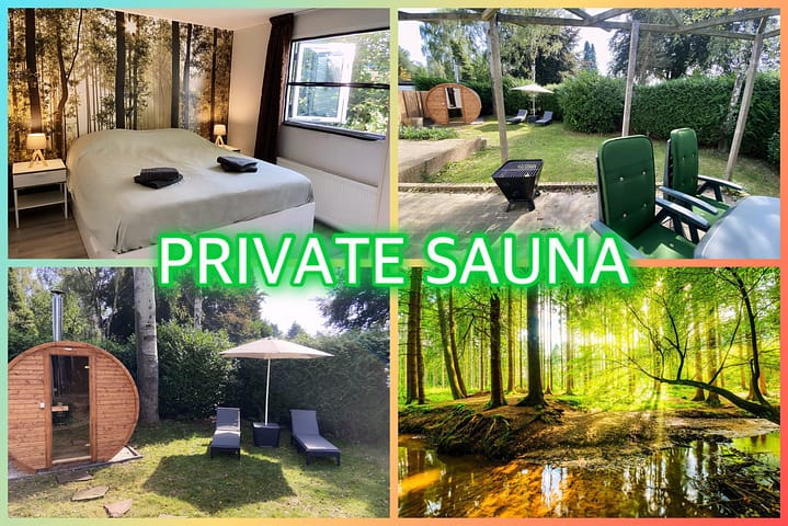 In de tuin staat een Prive barrel sauna voor 6 personen.