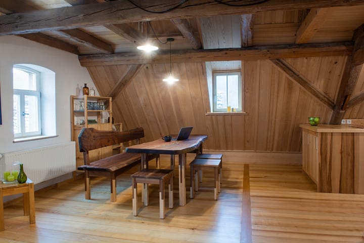 Met passie en veel steun van geweldige lokale ambachtslieden hebben we een oude boerderij omgetoverd tot moderne, diverse, warme en open ruimtes die zijn ontworpen als een plek van inspiratie en welzijn. Hier kun je je hoofd leegmaken en je ziel tot rust brengen. Neem de ruimte om opnieuw na te denken, want soms heb je een verandering van locatie nodig om je perspectief te veranderen. Geniet tegelijkertijd van de beslotenheid van de natuur en alle gemakken van een modern kantoorgebouw. Naast gezelligheid en rust biedt de Nussanger slimme verlichting, snel internet en goede technische apparatuur die je kunt gebruiken om te werken, presenteren of je evenement te organiseren.