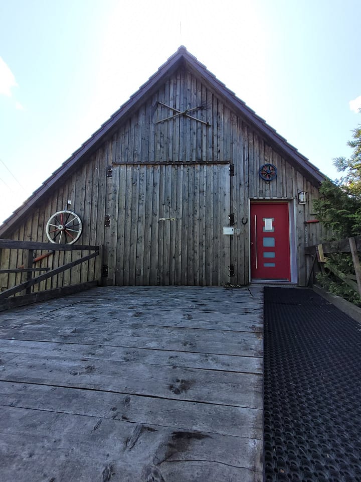 Onze schuur is verbouwd en uitgebreid met ons eigen hout uit ons eigen bos.