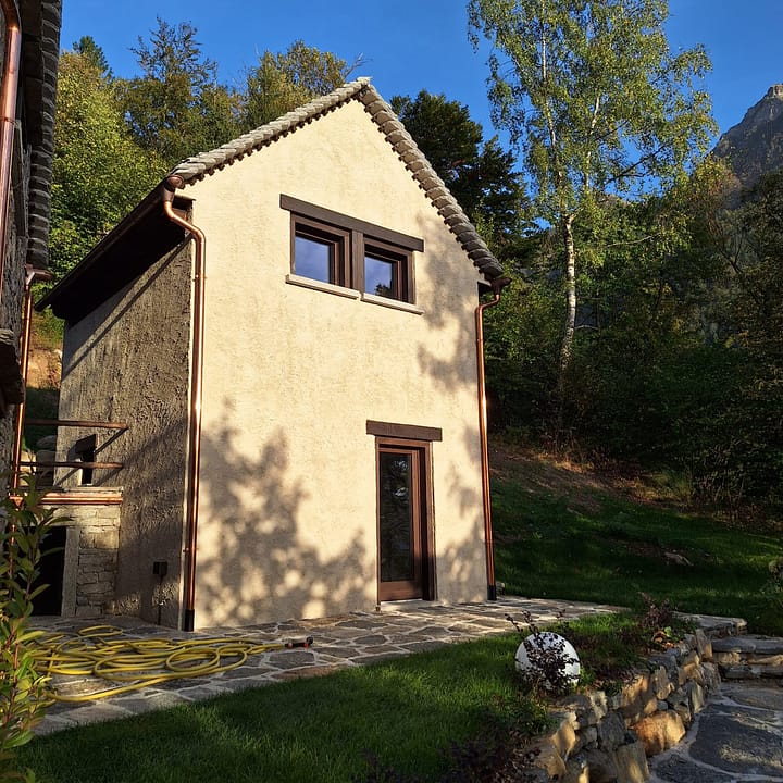 Een kleine hut op twee niveaus, bij de ingang is er een gezellige woonkamer met een comfortabele slaapbank ideaal voor een volwassene of twee kleine kinderen, een eettafel, een kitchenette en een houtkachel. Op de bovenverdieping is er een ruime slaapkamer met een tweepersoonsbed en een comfortabele badkamer met douchecabine. Een privétuin met uitzicht op de vallei en het nabijgelegen bos maakt het chalet compleet.