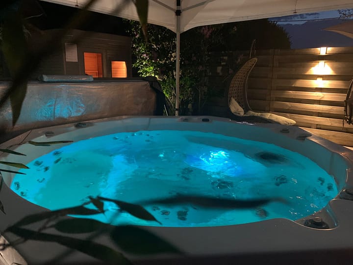 Ongebruikelijke bubbel met jacuzzi en privésauna, allemaal op eigen grond.