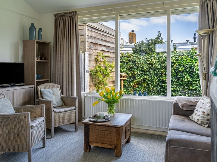 De woonkamer heeft een zithoek met kabel-tv. De open keuken heeft een vaatwasser, koelkast met vriesvak, magnetron en oven. In de serre is een eethoek aanwezig. Dit vakantiehuis heeft twee slaapkamers, beide met twee eenpersoons-boxspringbedden. De badkamer heeft een regendouche en er is een apart toilet. De bijkeuken is uitgerust met wasmachine. Dit vakantiehuis heeft een tuin die veel privacy biedt. Er is een terras met tuinmeubilair aanwezig.