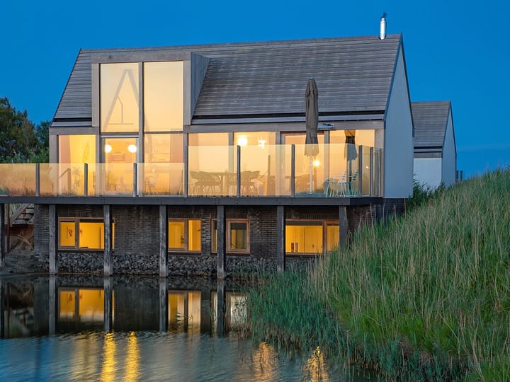 Dit vrijstaande vakantiehuis Uitzicht op Texel ligt aan een waterpartij en is omringd door landerijen. De grote woonkamer heeft een hoog plafond en ramen over de gehele lengte van het huis, die niet alleen zorgen voor een prachtig uitzicht, maar ook voor veel licht en ruimte binnen. Er is een zithoek met houtkachel (hout zelf meebrengen), smart-tv, Sonos box en dvd-speler. Er is ook een grote eethoek. Tussen de zithoek en de keuken is een kleine extra zithoek om rustig van het uitzicht te genieten. De open keuken is ingericht met koelkast, combinatie-oven, vaatwasser, koffiezetapparaat en Nespresso. Het souterrain is te bereiken via een houten trap. Er zijn drie slaapkamers met uitzicht op het water, waarvan 1 met TV, bureau en badkamer met inloopdouche en Sun shower. Deze badkamer is tevens bereikbaar vanuit de tweede slaapkamer. De derde slaapkamer heeft een inloopdouche. Er is ook een apart toilet. De wasruimte heeft een wasmachine en droger. Dit vakantiehuis heeft een groot, verwarmd terras van 50 m2. Tuinmeubilair is aanwezig.