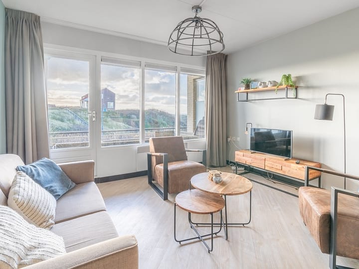 Modern en luxe 2-persoons eiland en zeezicht appartement op de begane grond. Entree, woonkamer met zithoek, tv en een eethoek met eettafel voor 4 personen. De open keuken is van alle gemakken voorzien, zoals een vaatwasser, combi-magnetron, koelvriescombinatie en diverse koffiemachines. De slaapkamer heeft een comfortabel 2 persoons boxspring bed en TV. De heerlijke ruime badkamer is voorzien van een inloopdouche, wastafel en toilet. Vanuit de badkamer heb je toegang tot de ruime Finse sauna. Vanaf het balkon heb je uitzicht over badplaats De Koog, de duinen en de Noordzee. Tuinmeubilair is standaard aanwezig.