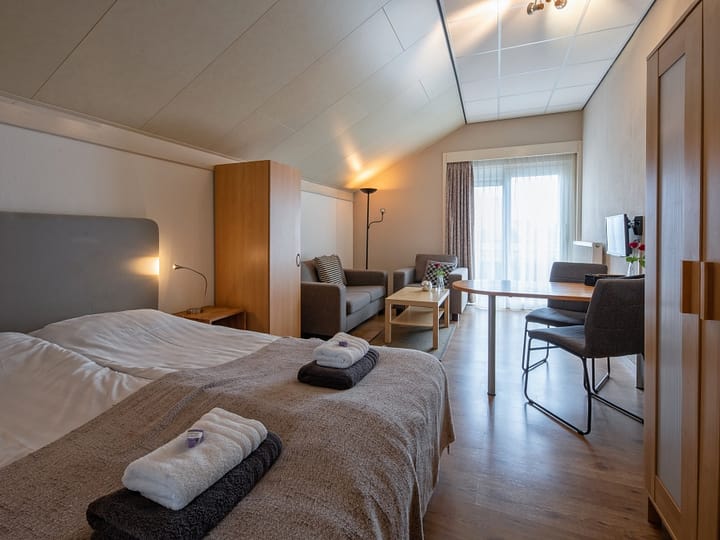 Dit appartement ligt op de eerste verdieping. De woonkamer heeft een zithoek met een 2-persoons zitbank, LED-TV en een klein eethoekje. Er staat een tweepersoonsbed in de kamer. De kitchenette is ingericht met een 2-pits keramische kookplaat en koelkast. De badkamer heeft een douche en toilet. Het appartement heeft een grote schuifpui en een Frans balkon waarop je kunt staan.