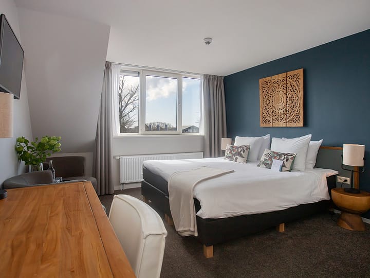 De Deluxe kamer is voorzien van boxspringbed met Texeler dekbed en een zitje met tv en radio. De badkamer heeft een bad, aparte regendouche, wastafel en toilet. Je hebt uitzicht over de tuin of de landerijen rond het hotel.