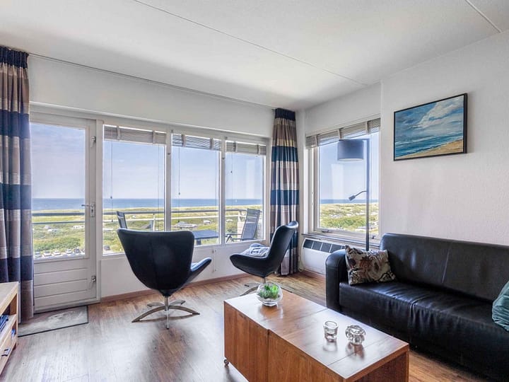 Dit appartement ligt op de tweede verdieping en biedt uitzicht op de Noordzee. De woonkamer heeft een zithoek met digitale LCD-tv, dvd-speler en stereo. De open keuken is ingericht met vaatwasser, combimagnetron, verschillende koffiezetapparaten en een eethoek. Er is een slaapkamer met 2 eenpersoons bedden. De badkamer heeft een wastafel en douche. Het toilet is apart. Dit appartement heeft een balkon op het westen. Tuinmeubilair is aanwezig.