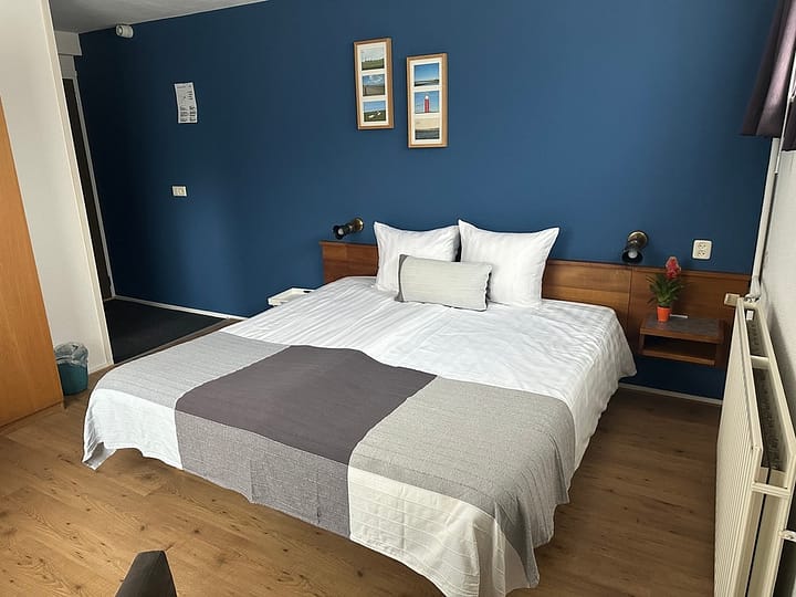 De kamer heeft een tweepersoons boxspringbed en een zithoek met tv. Er is een waterkoker voor het zetten van koffie/thee en een koelkast. De badkamer heeft een inloopdouche, wastafel en toilet. Op het balkon van de kamer staat tuinmeubilair voor je klaar.