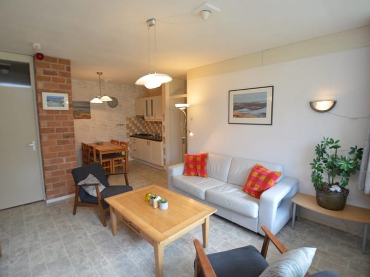 Dit nette appartement ligt op de begane grond van het appartementengebouw. De woonkamer heeft een zithoek met tv en een tweepersoons bedbank. De open keuken is ingericht met een koelkast, 4-pits gaskookplaat , koffiezetapparaat, combimagnetron en eethoek. In de slaapkamer staan 2 eenpersoons bedden. De badkamer heeft douche, wastafel en toilet. Dit appartement heeft een afgesloten balkon aan de tuinzijde. Tuinmeubilair is aanwezig.