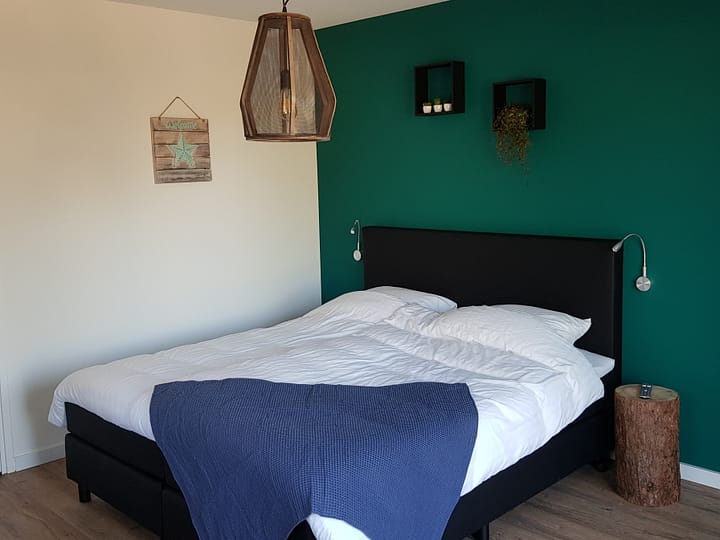 Kamer De Bollekamer heeft een eigen entree en ligt op de begane grond. De kamer heeft een tweepersoons bed, zitje, smart-tv, koelkast, waterkoker en Senseo. De badkamer heeft een inloopdouche, wastafel en toilet. Via openslaande deuren kom je op een privéterras met zitje, voorzien van elektrische zonnescherm. De drie kamers in BzB Westerduinen zijn ingericht met een ‘industriële touch’.