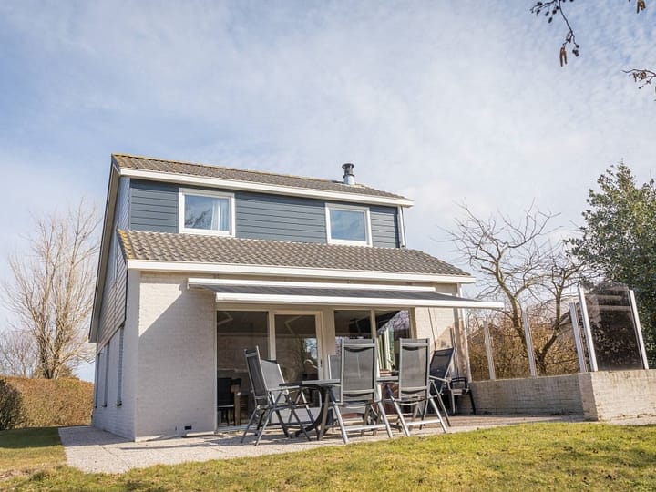 Dit vakantiehuis heeft een grote tuin met een afgeschermd terras, voorzien van een zonnescherm. Tuinmeubilair is aanwezig.
