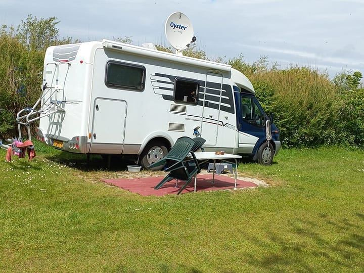 Kamperen met camper op boerencamping vlakbij het bos en Den Hoorn