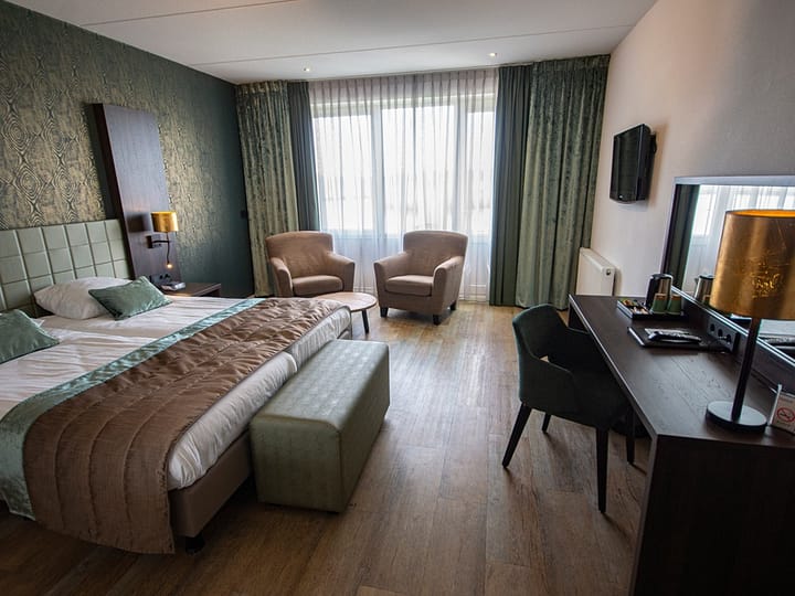 Privilege kamers DT van 25-30 m2 met terras. De kamer is uniek door de ligging, met een schitterend uitzicht over de vijver aan de achterzijde van het hotel. Deze comfortabele kamers zijn erg populair. De kamer is voorzien van badkamer met douche & toilet, fijne zithoek, koffie-/thee faciliteiten, LCD TV, telefoon met wek-dienst, wekkerradio, bureau/kaptafel, kluisje.