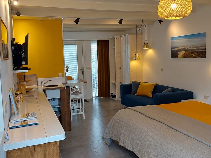 Je hebt een Smart-tv, en gratis wifi ter beschikking. De luxe badkamer heeft een heerlijke inloop-regendouche, wastafel, toilet en handdoekradiator. Verder is de kamer voorzien van een kleine koelkast, een aanrechtje met fontein warm/koud stromend water, Nespresso koffiemachine, water- en eierkoker en beschikt over een privé parkeerplaats en een privé terrasje aan de voor- en achterzijde.