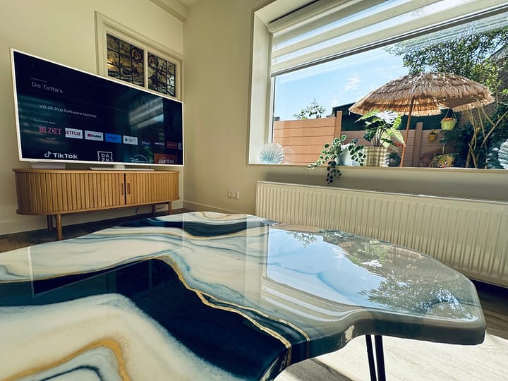 De woonkamer heeft een royale zithoek met smart-tv. De aparte keuken is ingericht met een eethoek, koelkast met vriesvak, combi oven, Quooker en vaatwasser. In de hal bevindt zich een apart toilet. Op de bovenverdieping zijn de badkamer met douche en toilet en twee slaapkamers met beide een wastafel. Een slaapkamer heeft één verstelbaar lits-jumeaux bed en een wastafel. De andere slaapkamer heeft een verstelbaar tweepersoonsbed en een wastafel.