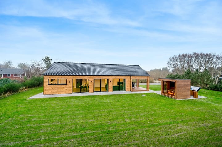 Vakantiehuis is geschikt voor 6 personen. De vakantiewoning heeft een oppervlakte van 92 m2 en is gebouwd in 2024. Het is toegestaan om 2 huisdieren mee te nemen. De vakantiewoning is uitgerust met 1 energiezuinige lucht-naar-lucht-warmtepomp. De vakantiewoning heft Wasmachine. Wasdroge. Voor de kleintjes 1 stukken Kinderstoel.De vakantiewoning is gelegen op een 1050 m² groot natuural grond. Afstand tot de fjord 400 m. Dichtstbijzijnde winkel 10000 m. Bij de vakantiewoning hoort terras. Daarnaast is er een overdekt terras. Buitensauna. Het huis heeft een stopcontact voor het opladen van een elektrische auto. Met 11 kW-laadvermogen. Parkeerplaats bij het huis.Er zijn in totaal 3 slaapkamers. De slaapplaatsen zijn als volgt verdeeld: 4 slaapplaatsen in tweepersoonsbedden.1 slaapplaats in eenpersoonsbed. 1 slaapplaatsen in stapelbedden. Verder is kinderbed ter beschikking. De keuken is uitgerust met amerikaanse koelkast, mini-oven, heteluchtoven en vaatwasser. Er is 1 badkamer met douchehok en 1 toilet.. Er is vloerverwarming in 1 badkamer.Het buiten hot tub biedt ontspanning aan 6 personen. In de vakantiewoning is aanwezig 1 smart-tv.1 Bluetooth-speaker. Geen tv-kanalen – alleen streaming. Draadloos internet.