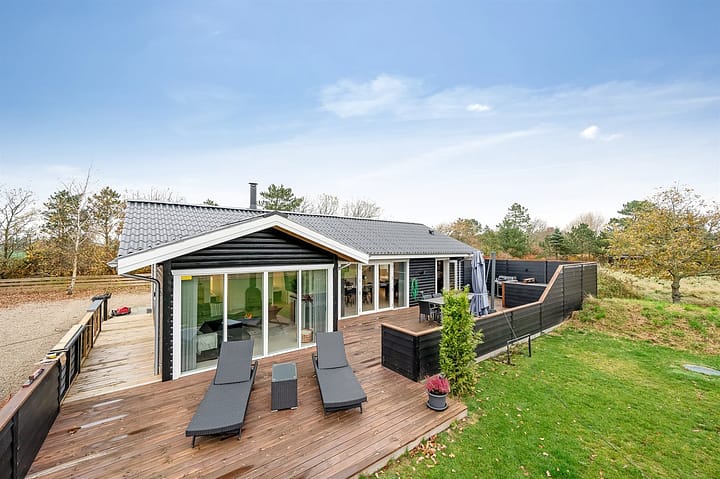 Vakantiehuis is geschikt voor 6 personen. 2 van de slaapplaatsen is alleen geschikt voor grotere kinderen (4-11 jaar). De vakantiewoning heeft een oppervlakte van 103 m2 en is gebouwd in 2024. Het is toegestaan om 2 huisdieren mee te nemen. De vakantiewoning is uitgerust met een energiezuinige lucht-naar-water-warmtepomp. De vakantiewoning is uitgerust met warmteterug-winningsinstallatie. Er is vloerverwarming in het hele huis. De vakantiewoning heft Wasmachine. Vriezer capaciteit van 60 liter. Er is daarnaast houtkachel.De vakantiewoning is gelegen op een 1360 m² groot natuural grond. De grond is omheind. Afstand tot de fjord 400 m. Dichtstbijzijnde winkel 9000 m. Bij de vakantiewoning hoort terras. Schommel. Zandbak. Buitensauna. Buitendouche. Barbecue. Het huis heeft een stopcontact voor het opladen van een elektrische auto. Oplaadstekker type 2. Met 9 kW-laadvermogen. Parkeerplaats bij het huis.Er zijn in totaal 3 slaapkamers. De slaapplaatsen zijn als volgt verdeeld: 2 slaapplaatsen in tweepersoonsbed.1 slaapplaats in eenpersoonsbed. 3 slaapplaatsen in stapelbedden.2 slaapplaatsen in verstelbaar bedden.De keuken is uitgerust met koelkast Er is 4 inductiekookplaten, heteluchtoven, magnetron en vaatwasser. Er is 1 badkamer met douchehok en 1 toilet.. Er is vloerverwarming in 1 badkamer.Het buiten hot tub biedt ontspanning aan 8 personen.In de vakantiewoning is aanwezig 1 smart-tv. Surround-installatie. Tenminste 4 deense zenders. 1-3 sweedse zenders. 1-3 noorse zenders. Tenminste 4 duitse zenders. Draadloos internet.