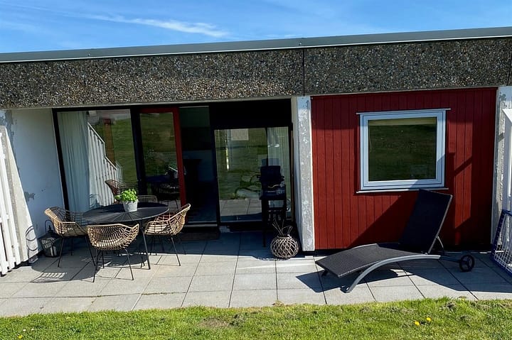 Vakantieappartement. is geschikt voor 6 personen. De vakantiewoning heeft een oppervlakte van 48 m2 en is gebouwd in 1972. In 2022 is de vakantiewoning volledig renoveerd. Het is toegestaan om 2 huisdieren mee te nemen. Vloerverwarming in alle stenen vloeren. De vakantiewoning geeft een gecombineerde wasmachine/wasdroger. Vriezer capaciteit van 40 liter. De vakantiewoning is gelegen op een 40 m² groot aangelegde tuin. Afstand tot de zee 350 m. Dichtstbijzijnde winkel 600 m. Er is een golfbaan op een afstand van 7700 m. Bij de vakantiewoning hoort terras. Barbecue.Er zijn in totaal 2 slaapkamers. De slaapplaatsen zijn als volgt verdeeld: 4 slaapplaatsen in tweepersoonsbedden. 1 slaapplaatsen in stapelbedden. 2 slaapplaatsen in slaapbanken (eenpersons). 2 van deze slaapplaatsen bevinden zich in de huiskamer.De keuken is uitgerust met koelkast Er is 4 inductiekookplaten, heteluchtoven, magnetron en vaatwasser. Er is 1 badkamer met douchehok en 1 toilet.. Er is vloerverwarming in 1 badkamer. In de vakantiewoning is aanwezig 1 smart-tv. 1-3 deense zenders. 1-3 sweedse zenders. 1-3 noorse zenders. 1-3 duitse zenders.