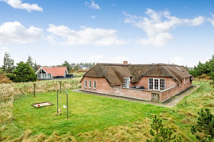 Vakantiehuis is geschikt voor 12 personen. De vakantiewoning heeft een oppervlakte van 175 m2 en is gebouwd in 1992. Het is toegestaan om 2 huisdieren mee te nemen. De vakantiewoning is uitgerust met een energiezuinige lucht-naar-water-warmtepomp. Vloerverwarming in alle stenen vloeren. De vakantiewoning heft Wasmachine. Wasdroge. Vriezer capaciteit van 80 liter. Voor de kleintjes 1 stukken Kinderstoel.De vakantiewoning is gelegen op een 2001 m² groot natuural grond. Afstand tot de zee 700 m. Afstand tot de fjord 800 m. Dichtstbijzijnde winkel 6000 m. Er is een golfbaan op een afstand van 7000 m. Bij de vakantiewoning hoort beschut terras. Schommel. Zandbak. Parkeerplaats bij het huis.Het binnenzwembad biedt de gelegenheid om heerlijk te spelen en gezellig samen te zijn. Het zwembad is 3,3 m breed, 5,6 m lang en tot 1,4 m diep. Het water heeft een temperatuur tussen de 24 en 28 °C. Er is vloerverwarming in het zwembadgebied.Er zijn in totaal 5 slaapkamers. De slaapplaatsen zijn als volgt verdeeld: 8 slaapplaatsen in tweepersoonsbedden.1 slaapplaats in eenpersoonsbed.4 slaapplaatsen op matrassen. 4 van deze slaapplaatsen bevinden zich in de open slaapzolder. Verder is kinderbed ter beschikking.De keuken is uitgerust met koelkast Er zijn 4 keramische kookplaten, heteluchtoven, magnetron en vaatwasser. Er is 2 badkamers met douchehok en 2 toiletten. Er is vloerverwarming in 2 van de badkamers. De sauna biedt de gelegenheid tot ontspanning.In de vakantiewoning is aanwezig 2 televisies. Radio. 1-3 deense zenders. Tenminste 4 duitse zenders. Draadloos internet.